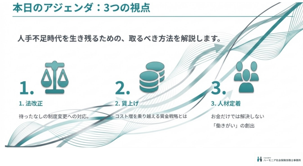 「2026年 働き方がこう変わる」セミナーを行いました。 2026-01-23 最終更新日時 : 2026-03-03 murahashi 1月23日 京丹波町にて商工会壮青年部様向けに、2026年の働き方(法律、賃金、人材定着)に関するセミナーを行いました。 セミナー後は、事業についての意見交換をさせて頂きながら、冬の名物、ぼたん鍋をいただきました。 ご参加頂いた皆様、ありがとうございました。 \ 最新情報をチェック /